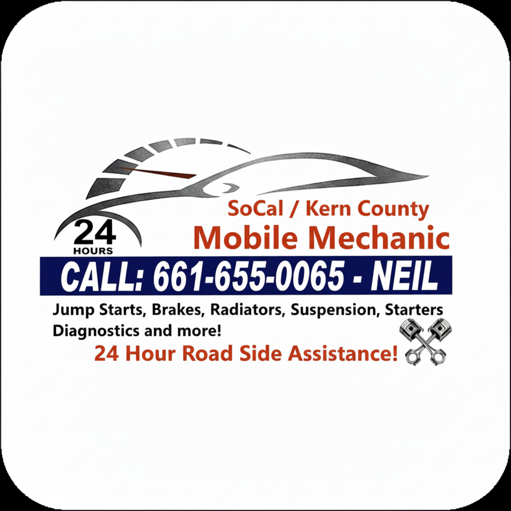 Professional mobile mechanic serving Bakersfield, Delano, Tehachapi, Wasco, Shafter, Arvin, Lamont, Ridgecrest, California City, Taft, McFarland, Rosamond, Lake Isabella, and all of Kern County. No tow truck needed — we bring the shop to your driveway, workplace, or roadside.